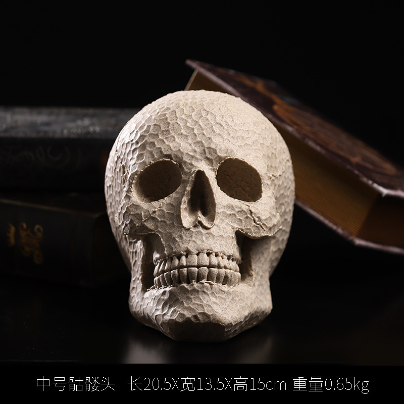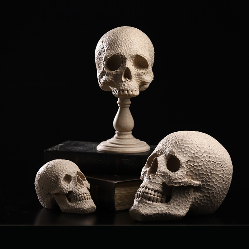 北欧创意人体头部模型雕塑摆件砂岩骷髅头创意桌面客厅玄关餐厅柜