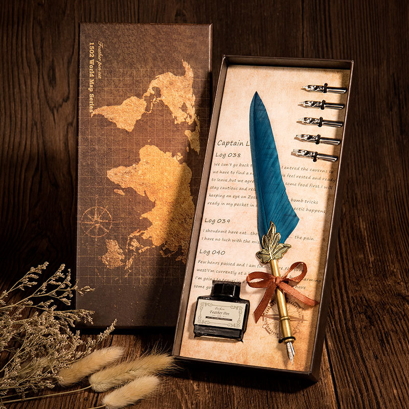 • 商品名称:欧式复古羽毛笔礼盒套装带墨水洒金蘸水羽毛笔创意书法学生沾水笔