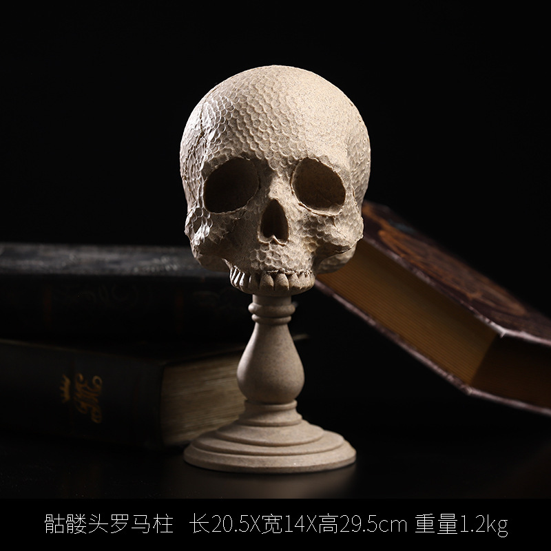 > 北欧创意人体头部模型雕塑摆件砂岩骷髅头创意桌面客厅玄关餐厅柜