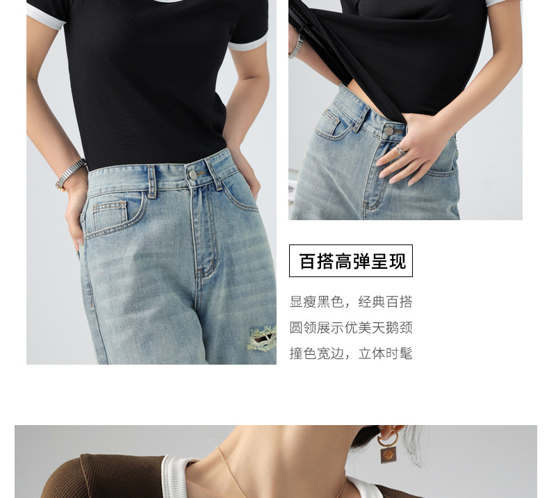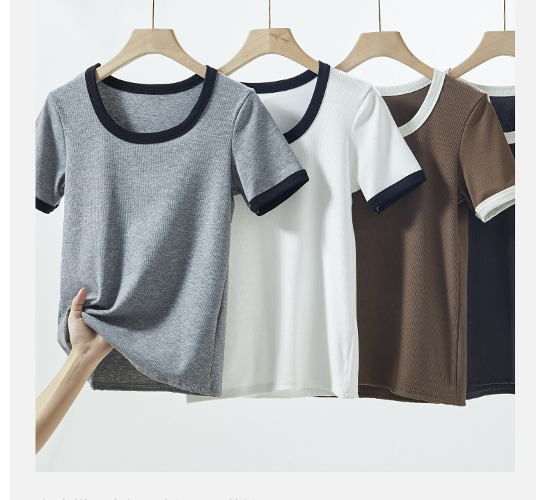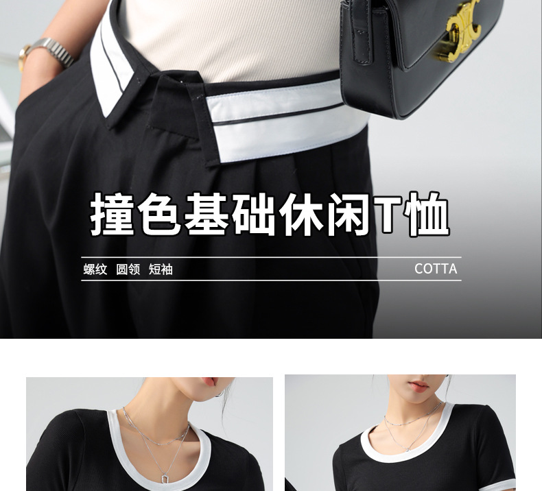 商品名称:夏季撞色大圆领正肩短袖t恤女ins潮仿纯棉法式风女装打底衫上衣